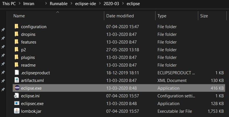 If you are not seeing the list, then click on the Specify Location and go to your Eclipse IDE path. In my case its “D:\Runnable\eclipse-ide\2020-03\eclipse”. click eclipse.exe and ok.